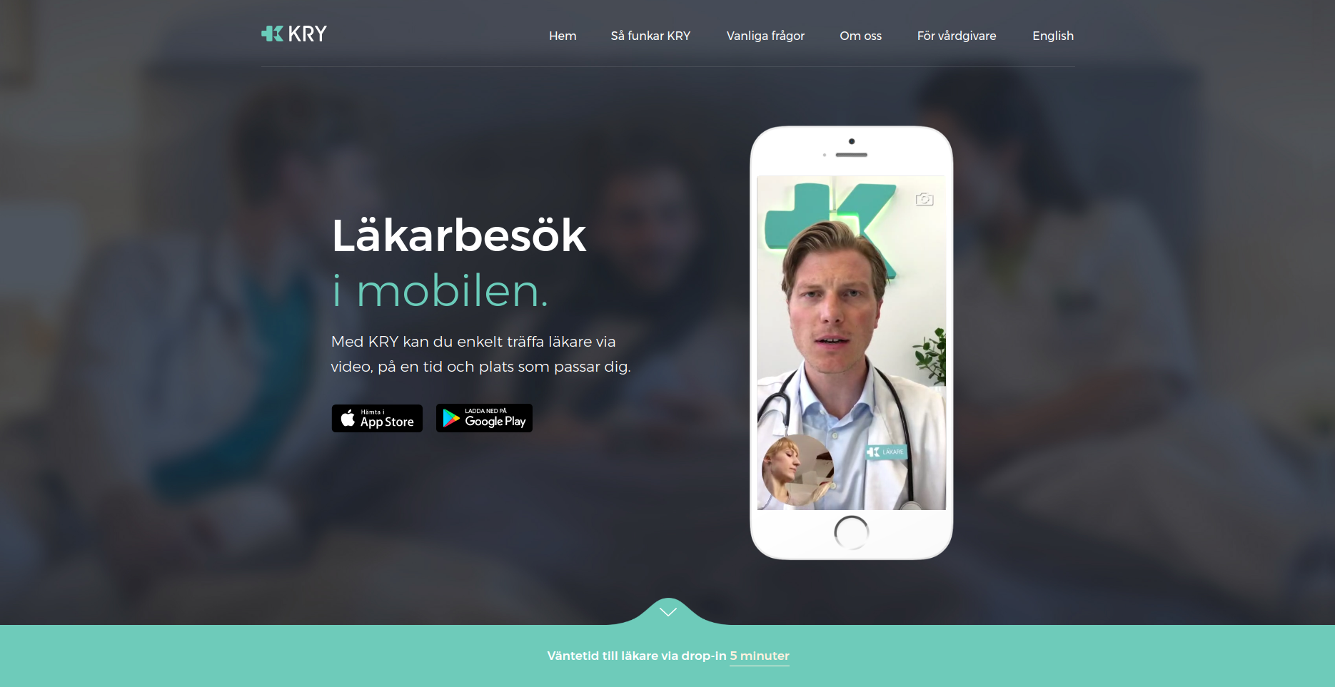 KRY ställer i grund och botten en väldigt enkel fråga: Varför sitta och vänta på Vårdcentralen när man är sjuk och bara vill ligga hemma. Med appen kan man besöka läkare direkt i mobilen och få recept utskrivna. Säkerheten hanteras med bank-id och en del av diagnosticerandet hjälper man till med genom att berätta mer i samband med bokningen.